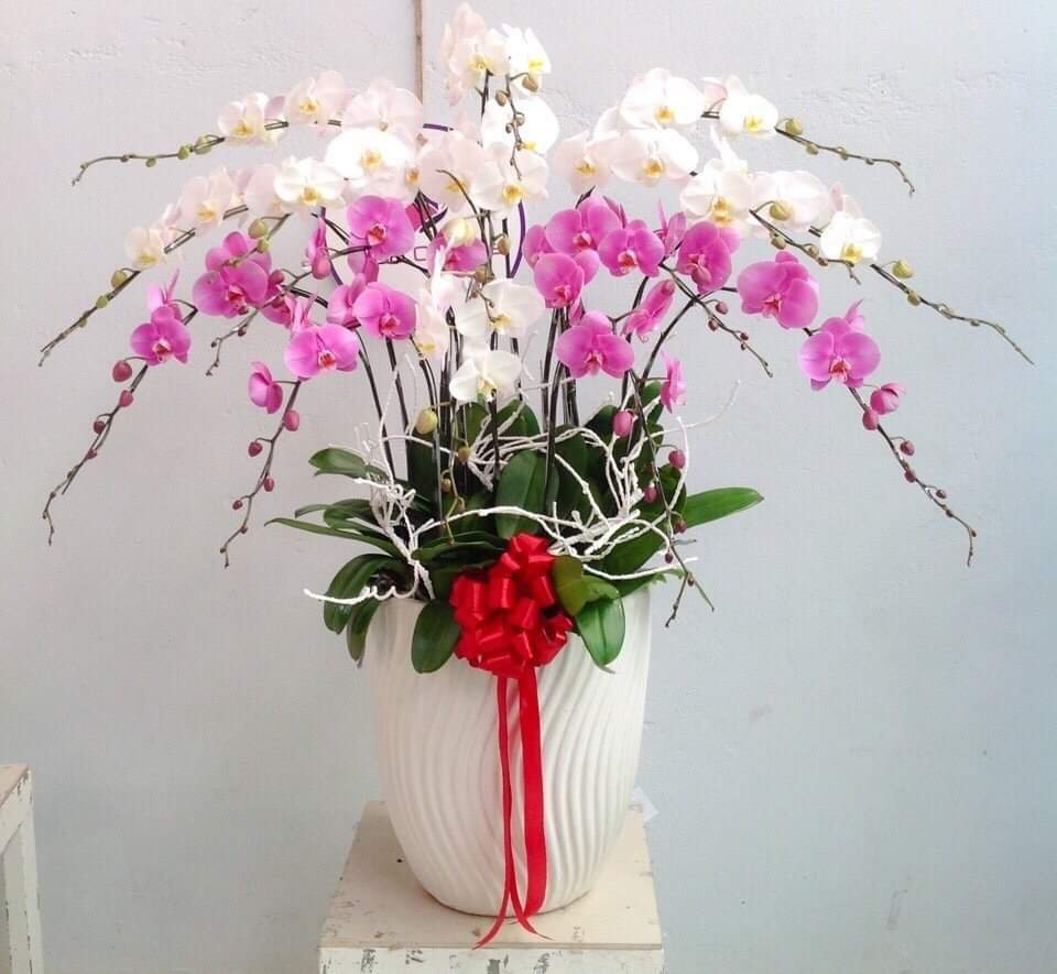 Chậu hoa lan hồ điệp nhiều màu được thiết kế đẹp, sang trọng, tinh tế và nghệ thuật