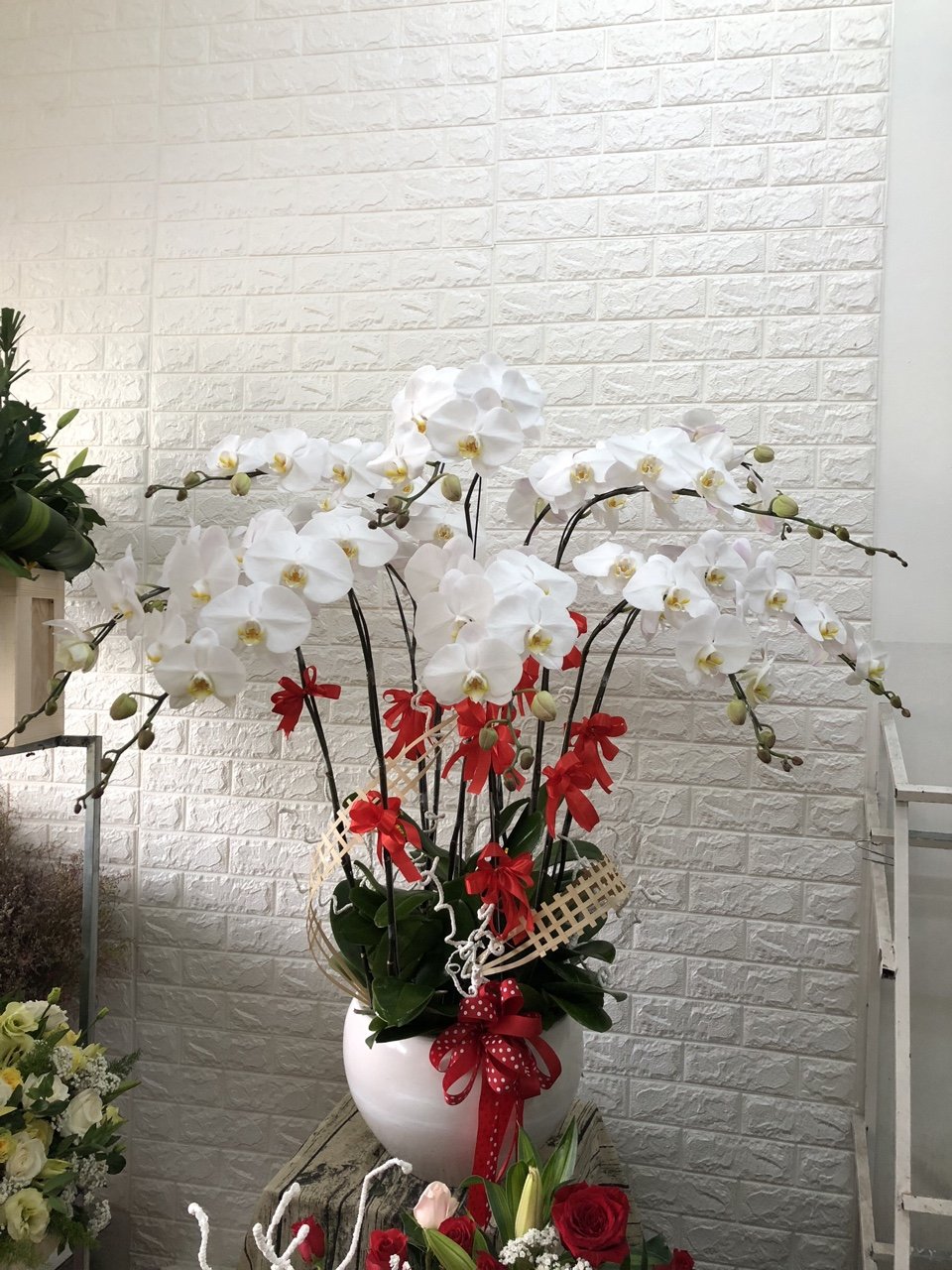 Sản phẩm chậu hoa lan hồ điệp màu trắng là 100% hoa lan của Đà lạt or Đài loan