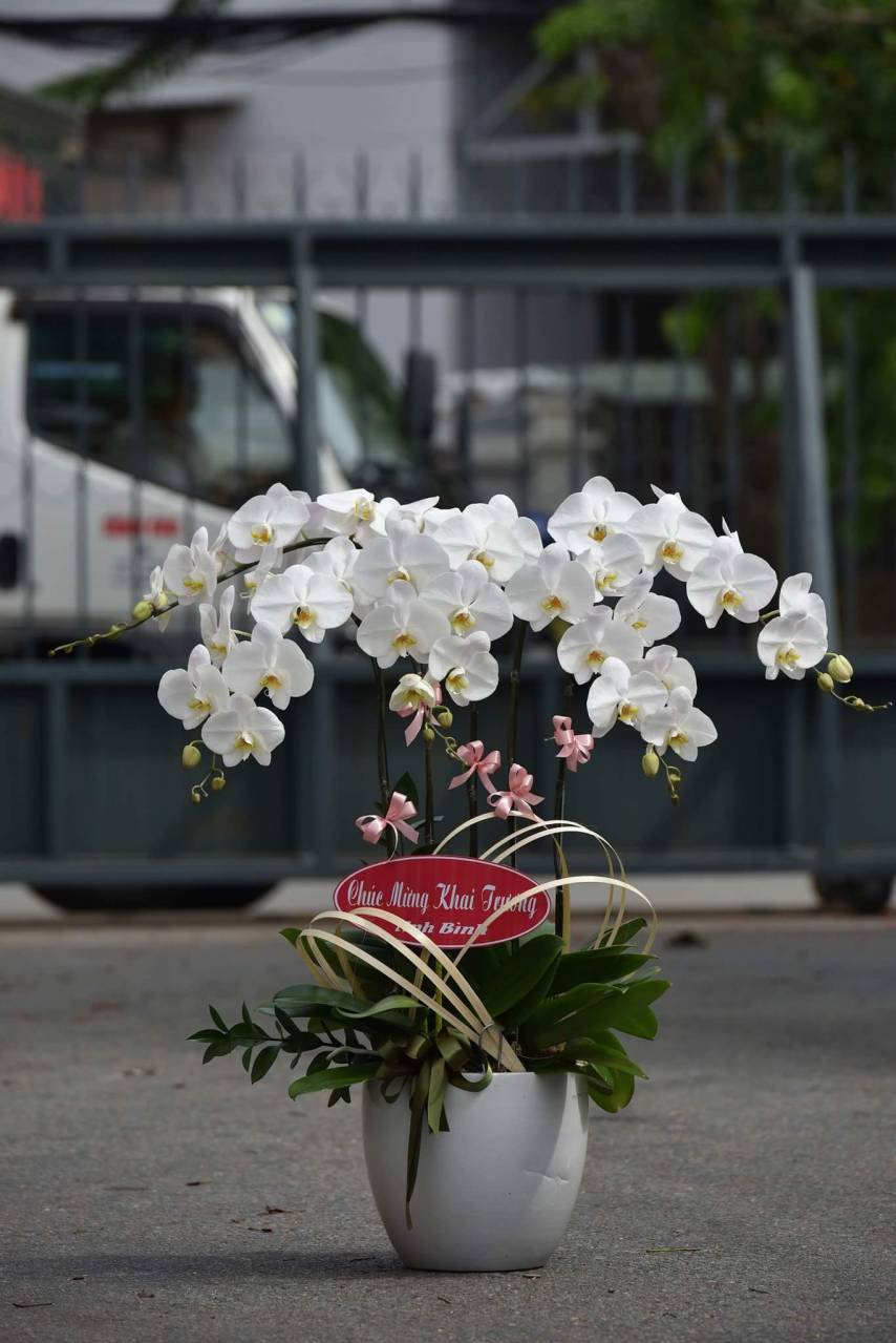 Sản phẩm chậu hoa lan hồ điệp màu trắng là 100% hoa lan của Đà lạt or Đài loan