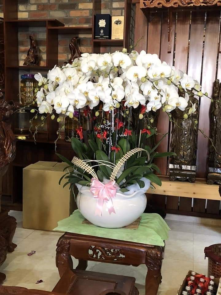 Sản phẩm chậu hoa lan hồ điệp màu trắng là 100% hoa lan của Đà lạt or Đài loan
