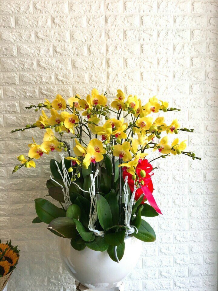 Sản phẩm chậu hoa lan hồ điệp màu vàng là 100% hoa lan của Đà lạt or Đài loan